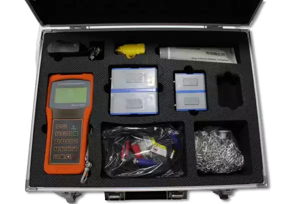 - Standart konfigürasyon: 1x Ana ünite, 2x Çift kelepçeli sensör, 2x5 m sensör bağlantı kablosu, 2x3 m gergi kayışı, 1x RS232 kablo, 1x akustik bağlayıcı jel, 1x taşıma çantası